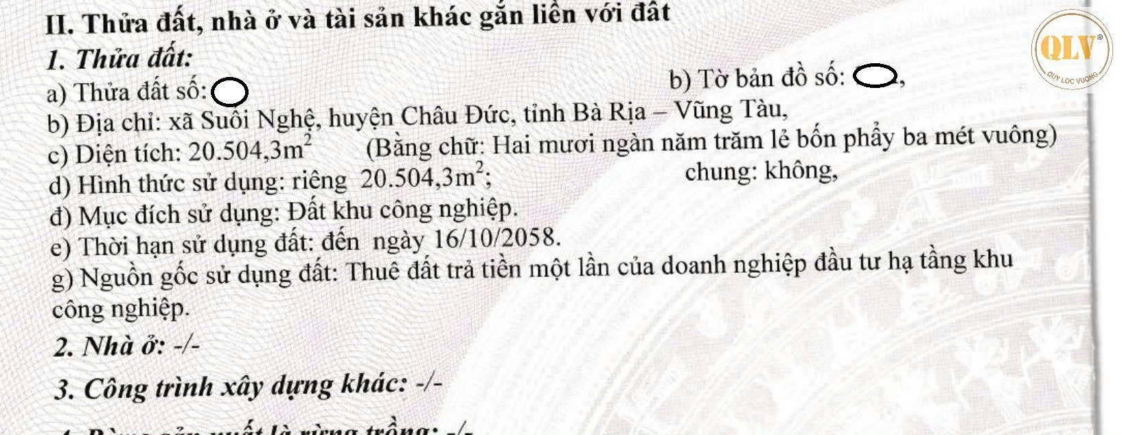Bán xưởng khuôn viên, CHÂU ĐỨC – BRVT – 20.504 m²