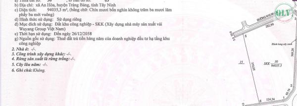 Đất có thời hạn sử dụng đến năm 2058, loại đất SKK (đất khu công nghiệp), đã hoàn chỉnh hạ tầng kỹ thuật.